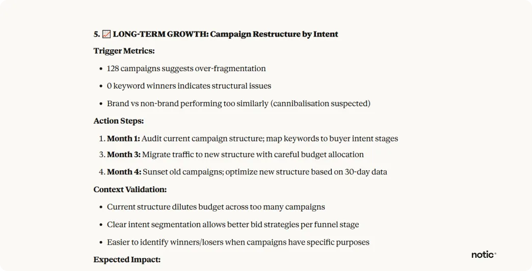 Ask Claude to identify quick optimisation opportunities after reviewing the whole account.