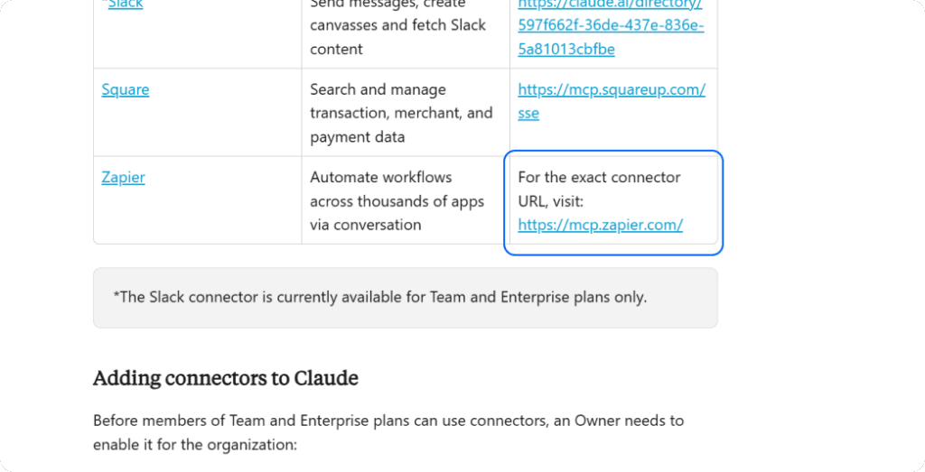 Scroll down until you find Zapier. Go to mcp.zapier.com.
